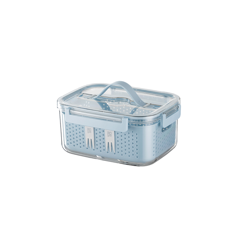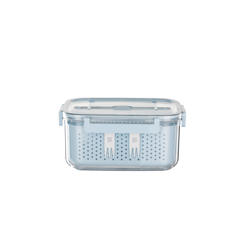 •Tightly locked with clip-on lids. Safe carry-out without loosening •Clean & draining 2 in 1 to avoid soaking of fruits •Packed with a tiny fork. Enjoy fruits at any time. •Easy to carry with a hidden silicone handle
