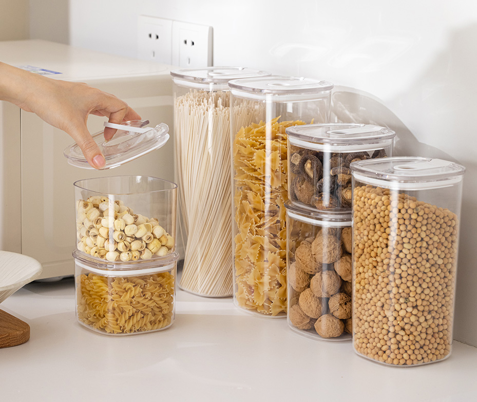 •易拉罐开启方式,单手轻松开盖 • 食品级AS材质 • 透明罐体,便于查看内容物及余量 • 硅胶密封,防潮防虫 • 4种容量,满足不同的收纳需求