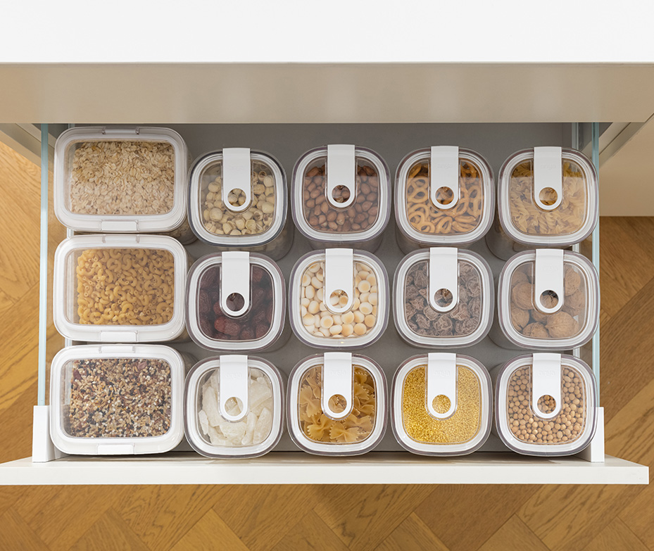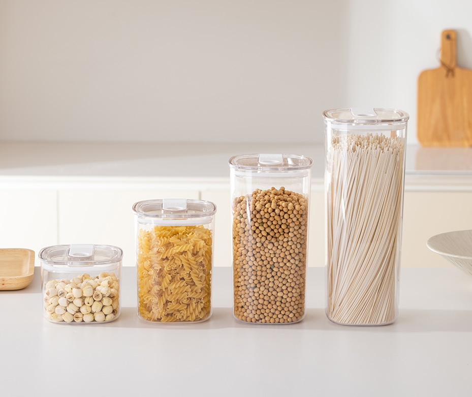 •易拉罐开启方式,单手轻松开盖 • 食品级AS材质 • 透明罐体,便于查看内容物及余量 • 硅胶密封,防潮防虫 • 4种容量,满足不同的收纳需求