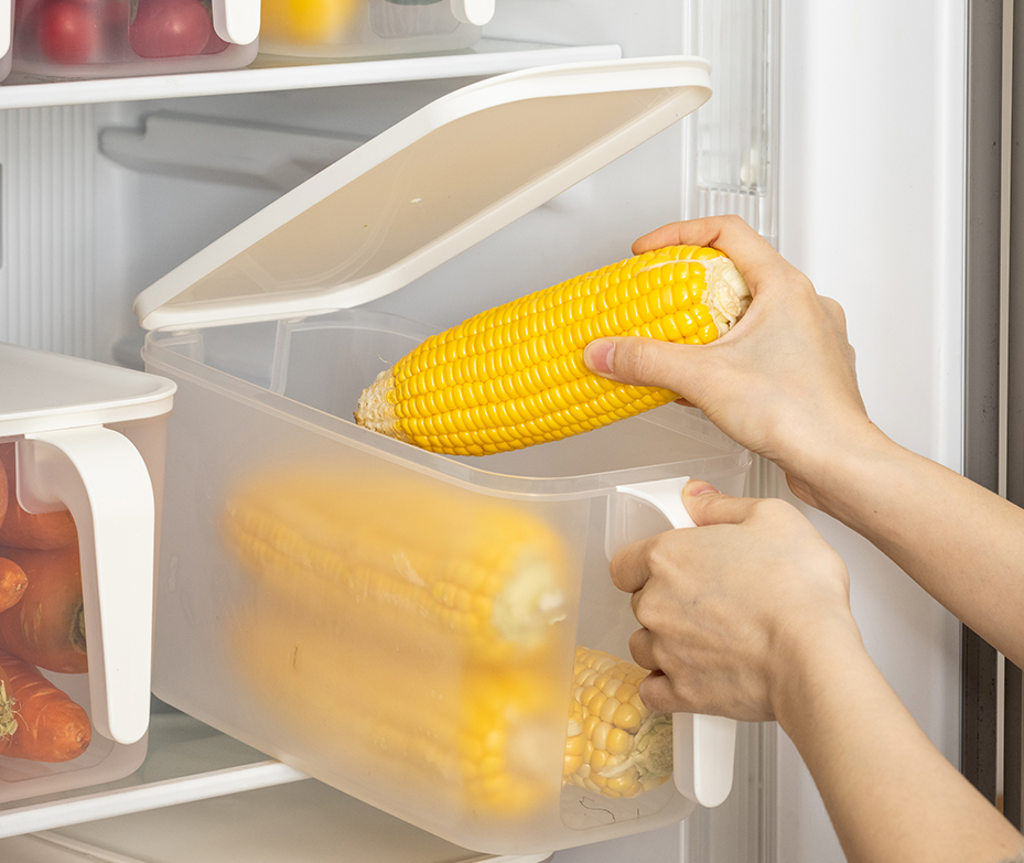 •盖子可45°悬停,取物更方便 •圆润把手,握持舒适省力 •底部凹槽设计,避免食材浸泡 •食品级PP材质,耐寒耐热无毒安全