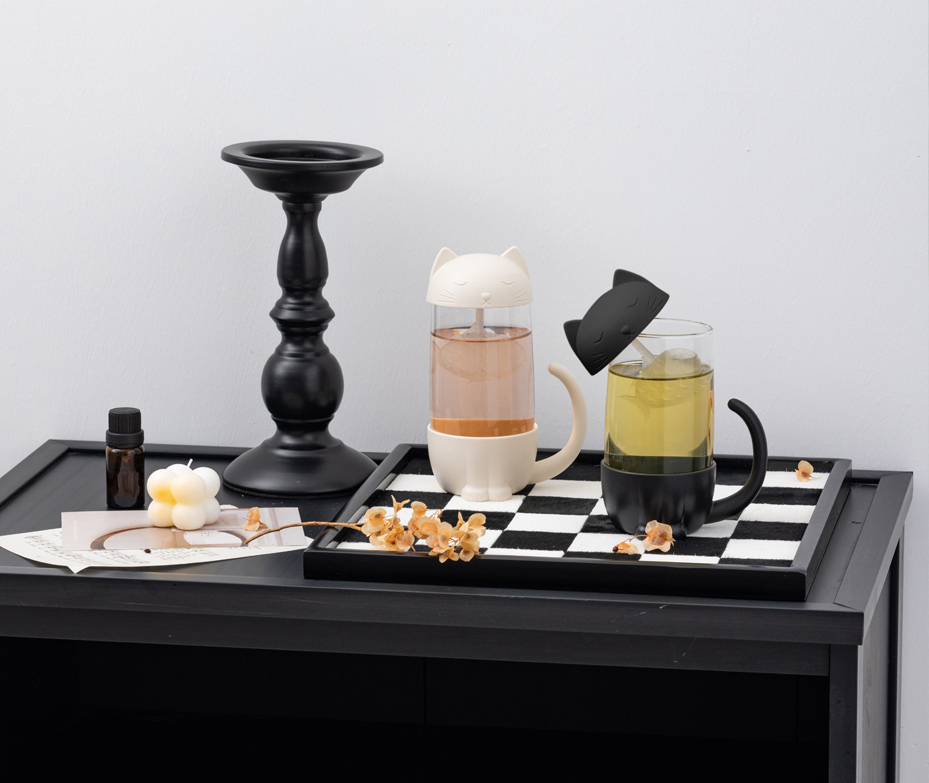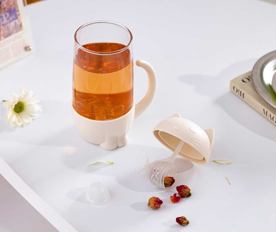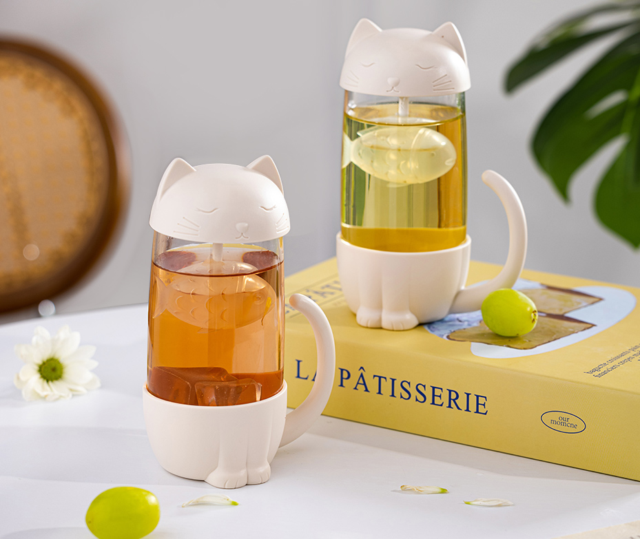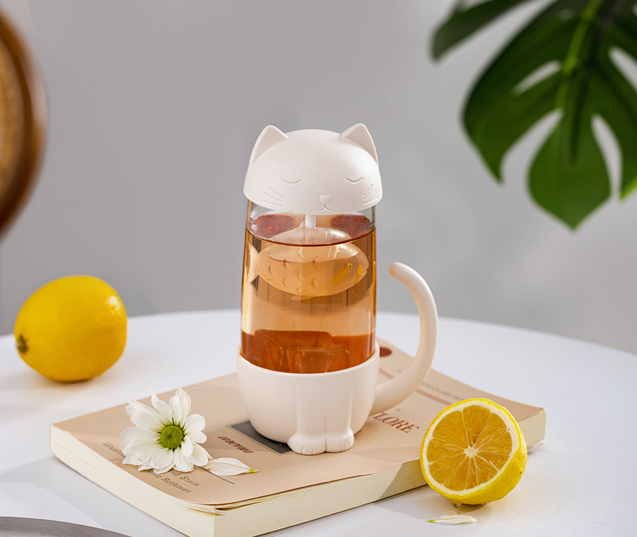 •可爱猫咪造型,生动有趣 •精致小鱼茶漏,可放置茶叶茶包 •茶漏可拆卸,清洗更方便 •260毫升容量钠钙玻璃材质