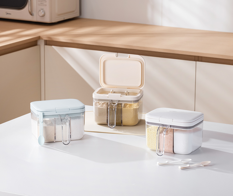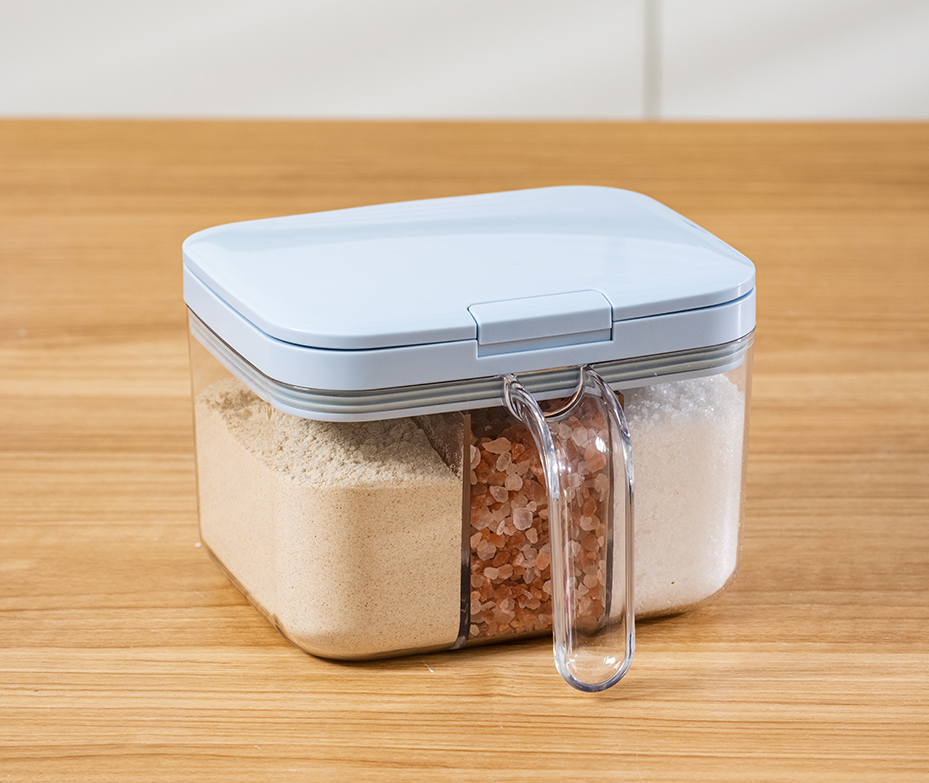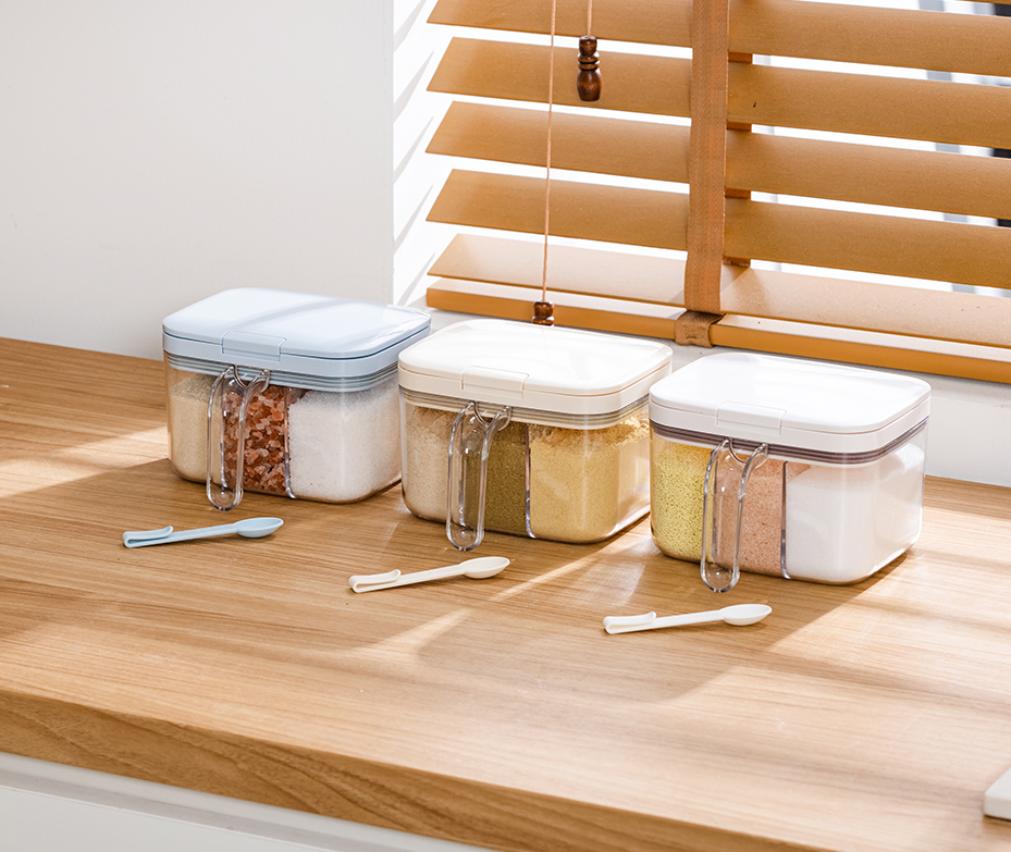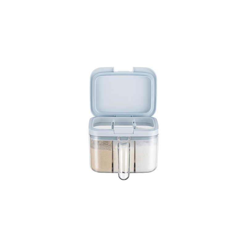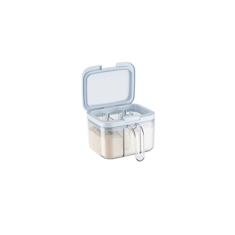 •一体三分格设计(1200ml),调料取用方便快捷; •400ml大单格,轻松装入一包盐; •一键弹盖设计,开盖不费力; •食品级密封硅胶圈,防潮防结块; •2ml独立小勺子,带刮平设计,减盐控糖更健康; •可拆卸设计,盖身分离,清洗更方便; •食品级PET材质,环保无异味,质感通透颜值高;