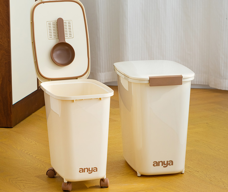•专为宠物食品设计——大容量、防潮、防虫 •20L可装约10kg宠物食品,12L可装约5kg •按扣设计,单手打开 •硅胶密封,气密防水 •磁吸悬浮勺子,避免勺子和宠物粮直接接触,不脏手 •窄边高桶身设计,有效利用垂直空间 •非常适合食品收纳和宠物食品储存