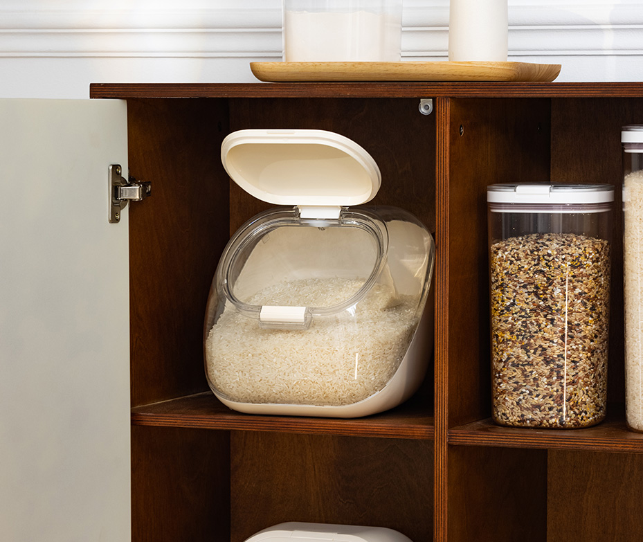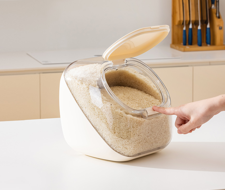 • 一键弹盖,单手可操作 • 原创上开盖/下开盖两种方式,以适配不同的橱柜收纳 • 硅胶密封,防虫防潮 • 适合各种食物及宠物粮收纳